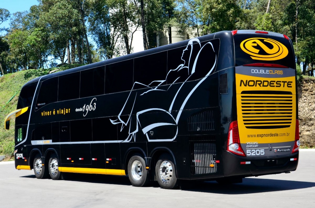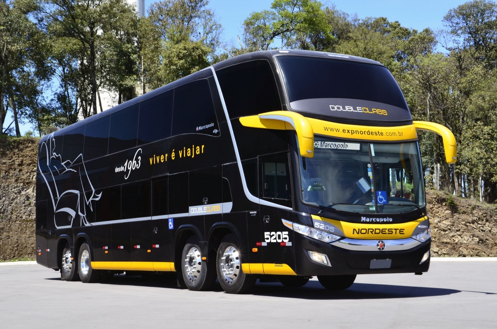 The Expresso Nordeste, located in the city of Campo Mourao/PR (Parana), renews its fleet with eight new Paradiso 1800 Double Decker buses. The vehicles will be used on road routes connecting various cities such as Foz do Iguaçu, Cascavel, Toledo, Guaira, Maringá, Londrina, Guarapuava, Ponta Grossa, Curitiba, Sao Paulo, Sorocaba, Sao Jose dos Campos, American, Campinas, Ribeirao Preto, Franca, Aparecida, Resende, Rio de Janeiro, Joinville, Camboriu and Florianopolis.
