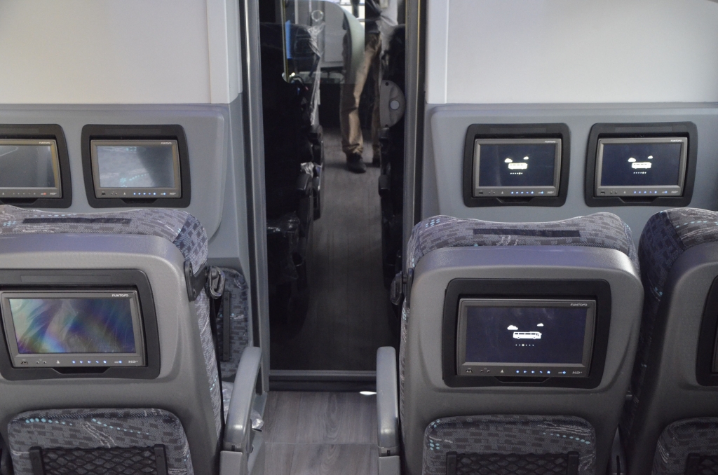 The instrument panel, with retractable satellites, incorporates all the equipment such as the reverse camera display, built-in cameras and the multiplex system (combined functions of all bus equipment). It also counts with repositioned air vents and a more efficient ventilation system, storage compartment behind the seat, touch sensible individual lighting for the driver and the driver’s assistant.