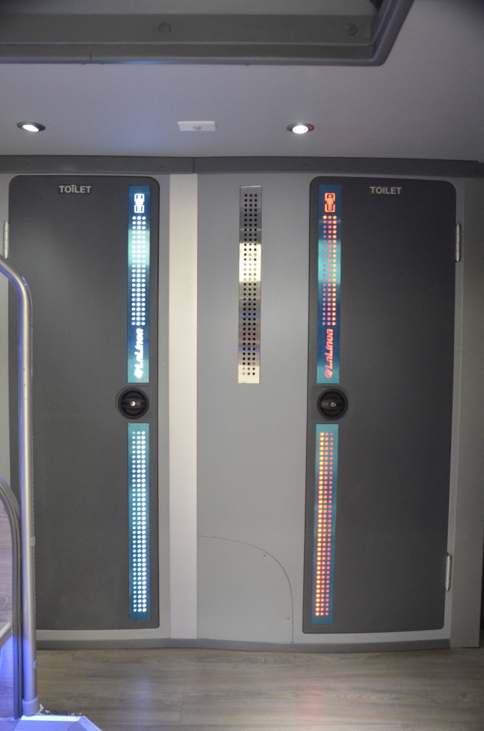 Other features that have been developed by Marcopolo and Polomex engineering are the new more spacious and functional male and female toilets; new 100% flat flooring on the lower passenger saloon; 1.80 m height fully accessible cabin tunnel passage and the new access stairs to the top floor (new design), which facilitates getting on and off the vehicle in a more comfortable, faster and ergonomic way.