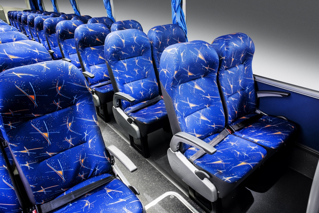 For increased comfort, the Audace introduces new easy-access wider 1,030 mm executive seats. Another feature is the bolder and newer pattern of the seat, side panel and parcel rack covering. The vehicle has also optional 15-inch monitors positioned on the ceiling over the entire passenger’s compartment, for increased visibility from any seat.