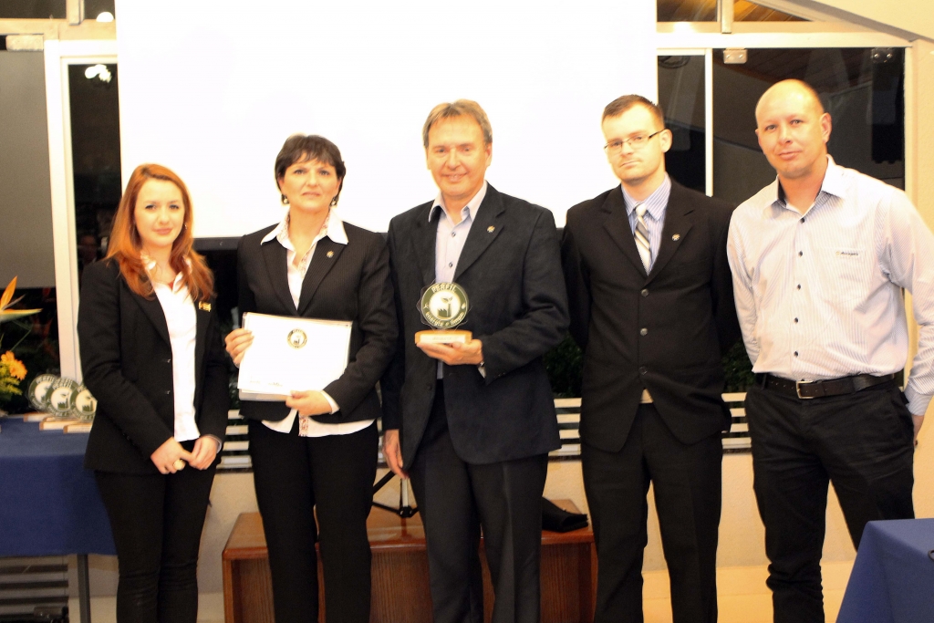 Leyenda de la foto: Representantes de Marcopolo reciben el certificado de la Consultora Perfil Energía