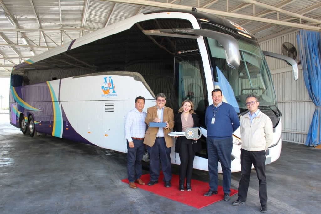 En manos del director general José Luiz Goes y en compañía del equipo comercial, nuestro distinguido cliente Alberto Arce recibe la primer unidad Paradiso 1350 Marcopolo G8, la cual se suma a su flota vehicular, uno de nuestros principales clientes en el estado de Hermosillo Sonora, esto representa un gran avance en innovación para el transporte de carreteras en la zona del pacífico.